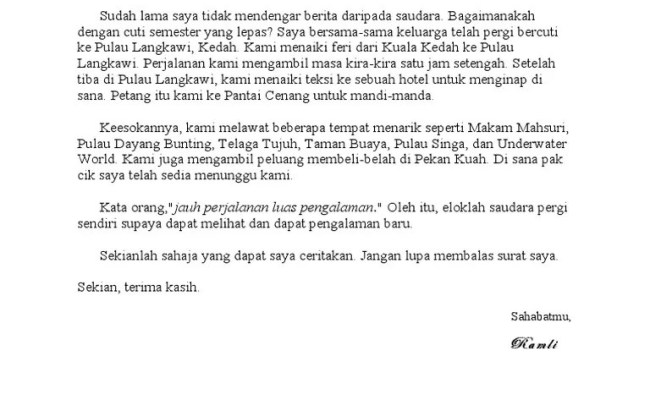 Karangan Aktiviti Semasa Cuti Sekolah Tahun 4 : Surat Tidak Rasmi Aktiviti Cuti Sekolah Letter 7saudara Com